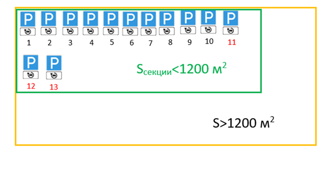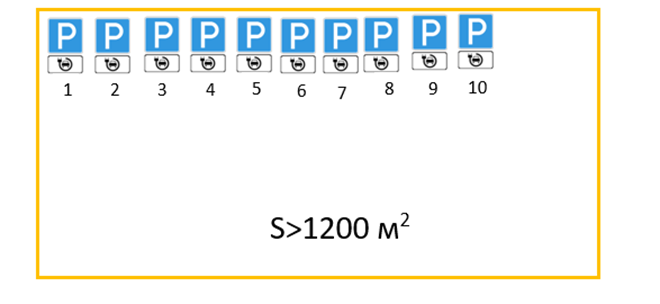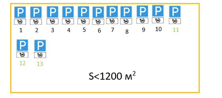 Требования нормативных документов не ограничивают количество размещаемых машино-мест в стоянках, имеющих площадь не более 1200 м2.