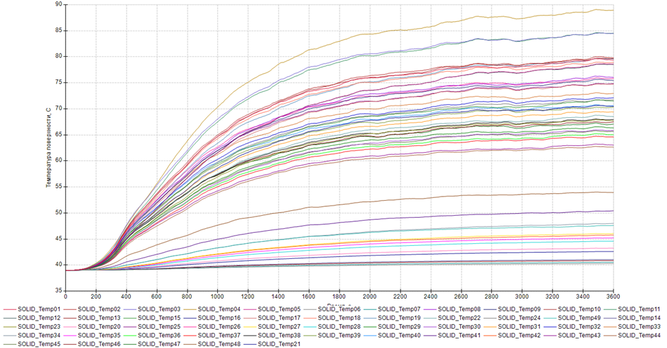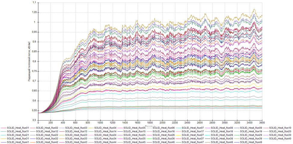 За расчетное время (3600 с) температура и тепловые потоки для помещения 3-го этажа не достигли своих критических значений.