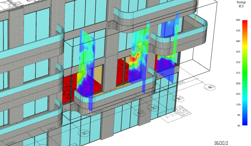 Теплотехнический расчет по оценке проектных решений, обеспечивающих нераспространение пожара по фасаду здания