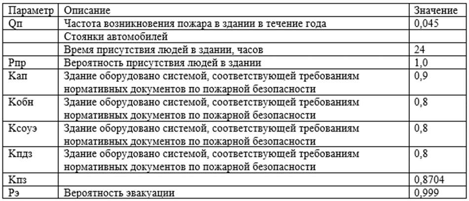Расчетная величина индивидуального пожарного риска Ri для сценария пожара в подземном паркинге рассчитывается по формуле: